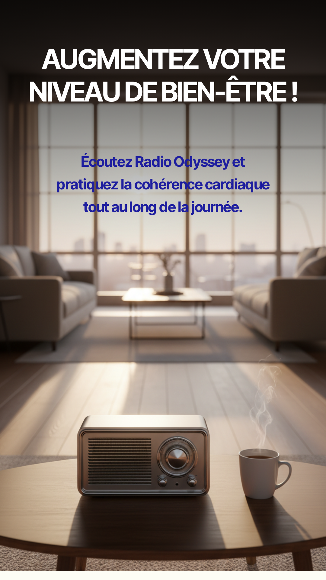 Que vous soyez au bureau, à domicile ou en déplacement, Radio Odyssey, votre radio cohérence cardiaque vous accompagne partout.